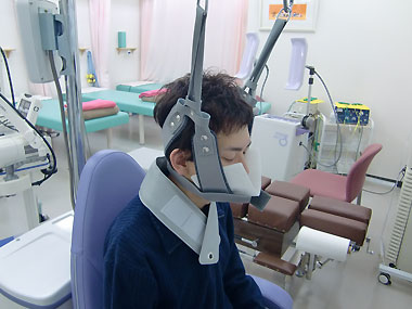 牽引部位の筋スパズムの改善や間欠牽引によるマッサージ効果、椎間開大の手助けをして圧迫神経への影響をやわらげる効果があります。