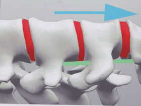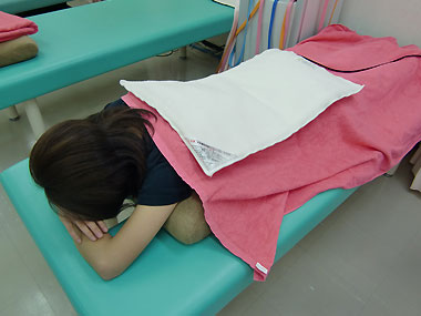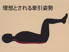 当院では理想的な牽引姿勢といわれる、腰椎前彎が緩和された状態で治療を行いますので、少ない牽引力でも効果的な治療が行えます。